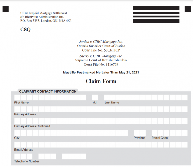 准备好您的证明文件并上网填写此表格,网址:https://www.cibcprepaidmortgagesettlement.com/media/4110049/v2_c8q_approvalclaim_web_111822_final.pdf