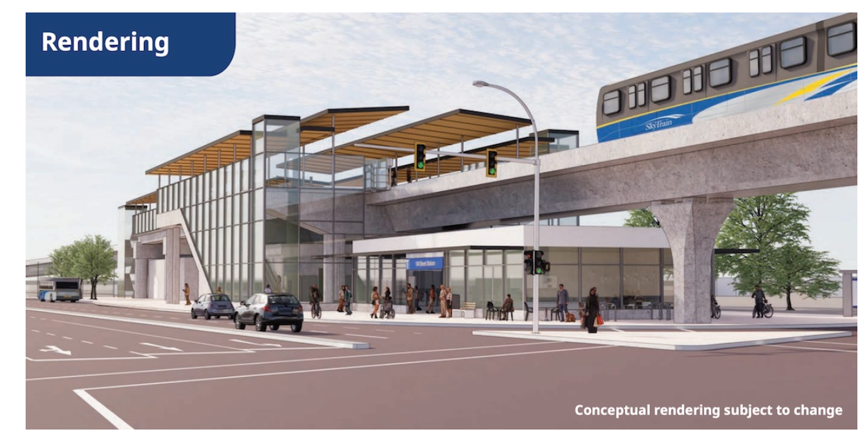 此外,咨询强调了促进高密度、以交通为导向的发展的方法,以在天车站附近提供更多的住房选择和经济适用房、零售和服务、就业空间、娱乐以及教育设施。根据省政府和TransLink的规定,为了换取主要的交通投资,素里市和兰里市都参与了各种规划过程,创建新的区域计划,使车站周围的区域更加密集。