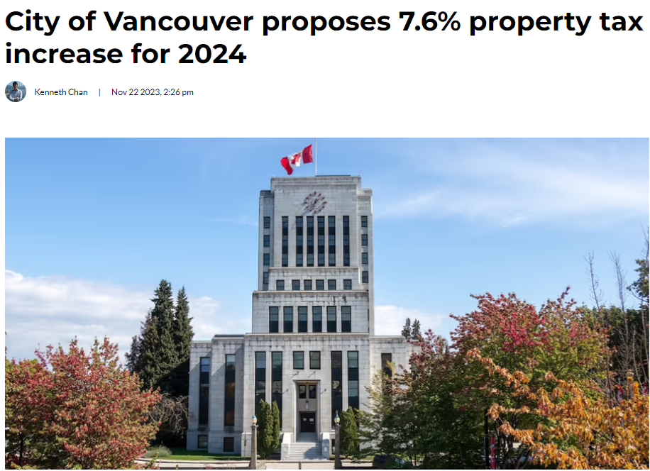 (转)涨不停!温哥华地税2024年拟提高这个数!远高于历史平均水平