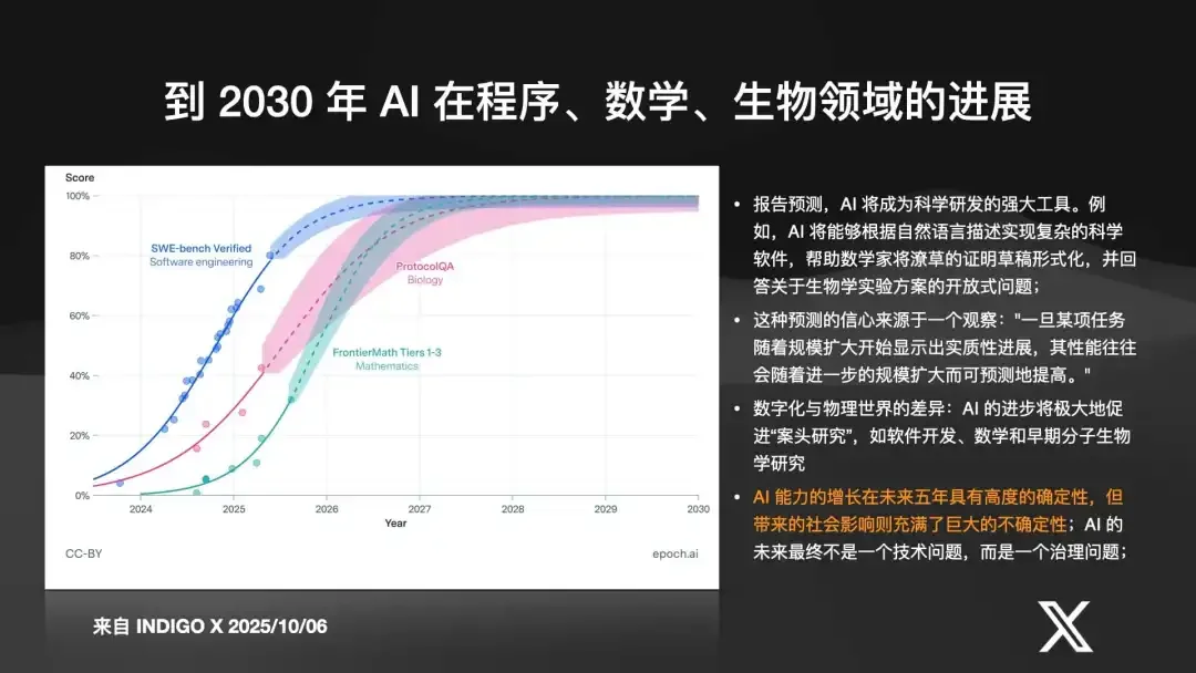 到 2030 年,AI 在编程、生物、数学等所有领域的专家能力都将达到 100%。