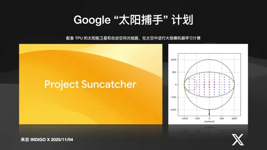 • 谷歌的“Sun Catcher”(太阳捕手)计划:在近地轨道部署 100 颗卫星,每颗都带 TPU,用激光高速互联,在太空中组建一个巨大的 AI 训练矩阵。