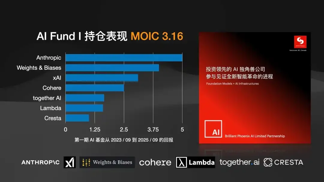 • Weights & Biases: 一家 AI 训练工具公司,已被 CoreWeave 收购,而 CoreWeave 刚刚上市。因此,我们第一期基金在成立仅两年后,就已经开始向投资人分配回报(现金和股票)。