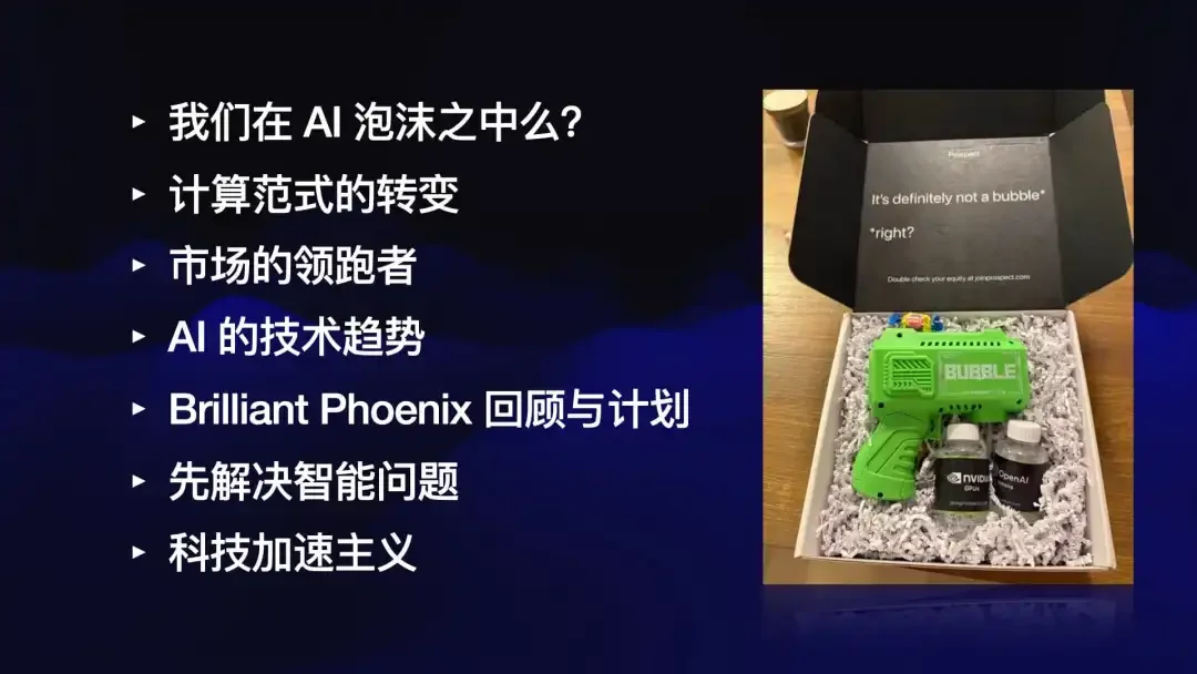 在两年六个月后的回望中,这场分享试图回答三个问题:我们究竟身处怎样的“泡沫”?推动曲线的真实力量是什么?在加速主义与社会承载力的张力之中,个人与资本应如何布阵?INDIGO 以“技术—资本—产业”的三元视角,系统梳理了 AI 的阶段性跃迁。